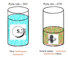 В каждой отдельной игре/теме - может быть разное сочетания этих осознанных или зависших масс. Например - мое общение с родителями - свободное внимание. У кого-то - в теме денег, много зарядов тоже