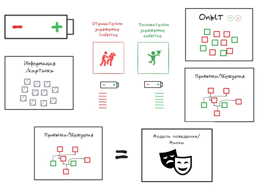 Каждое взаимодейсвтие, каждое общение - это какой-то да опыт (каритнки, которые записывает разум.)